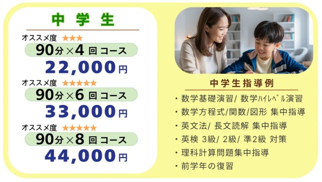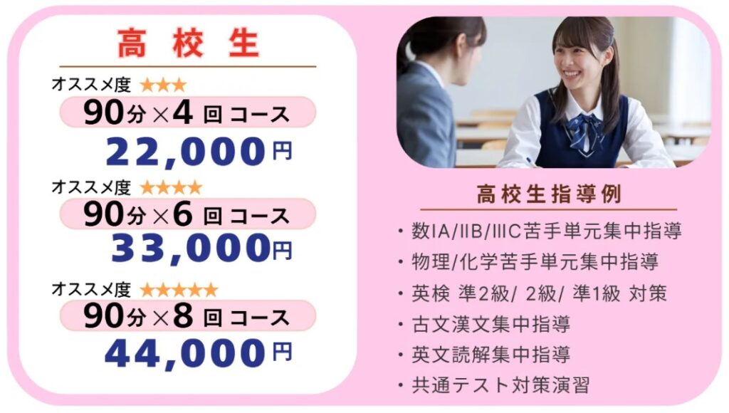 初めに「春期講習マンツーマン個別指導」を受講し、