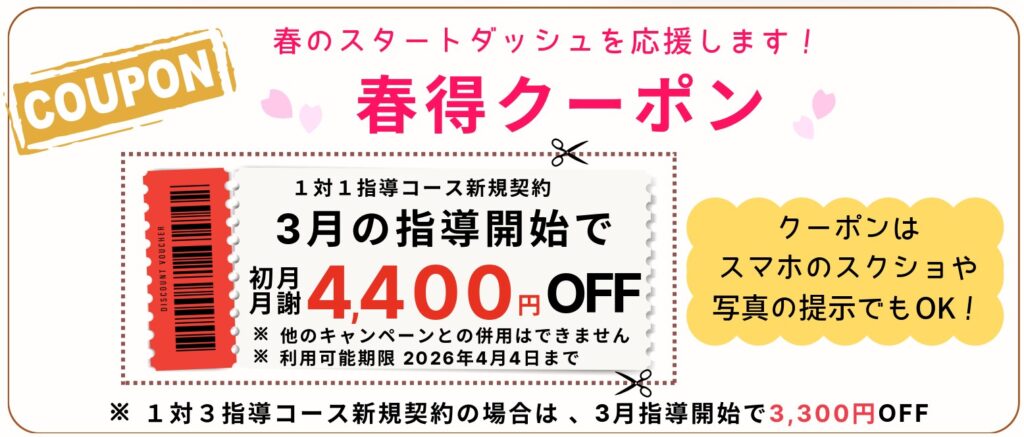 「春得クーポンーポン利用で個別指導コース新規ご入会」